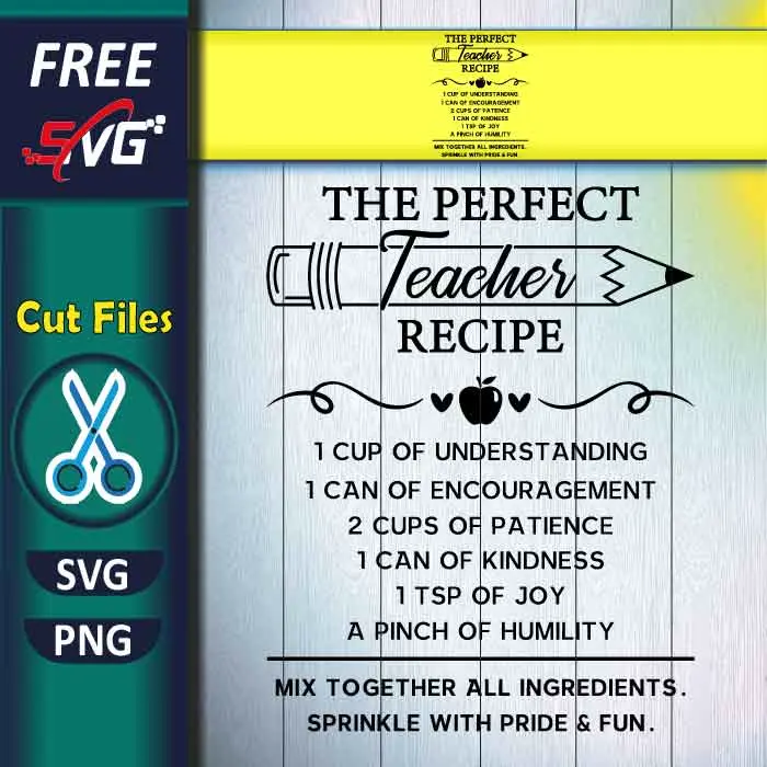 Free Teacher Recipe SVG – Perfect Appreciation Cut File for Cricut, Silhouette.